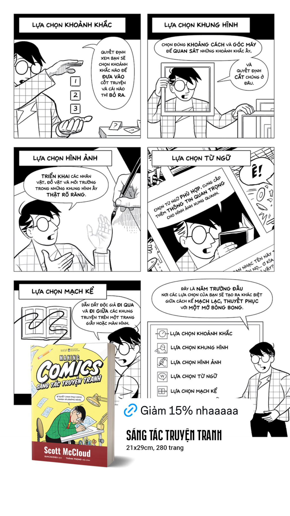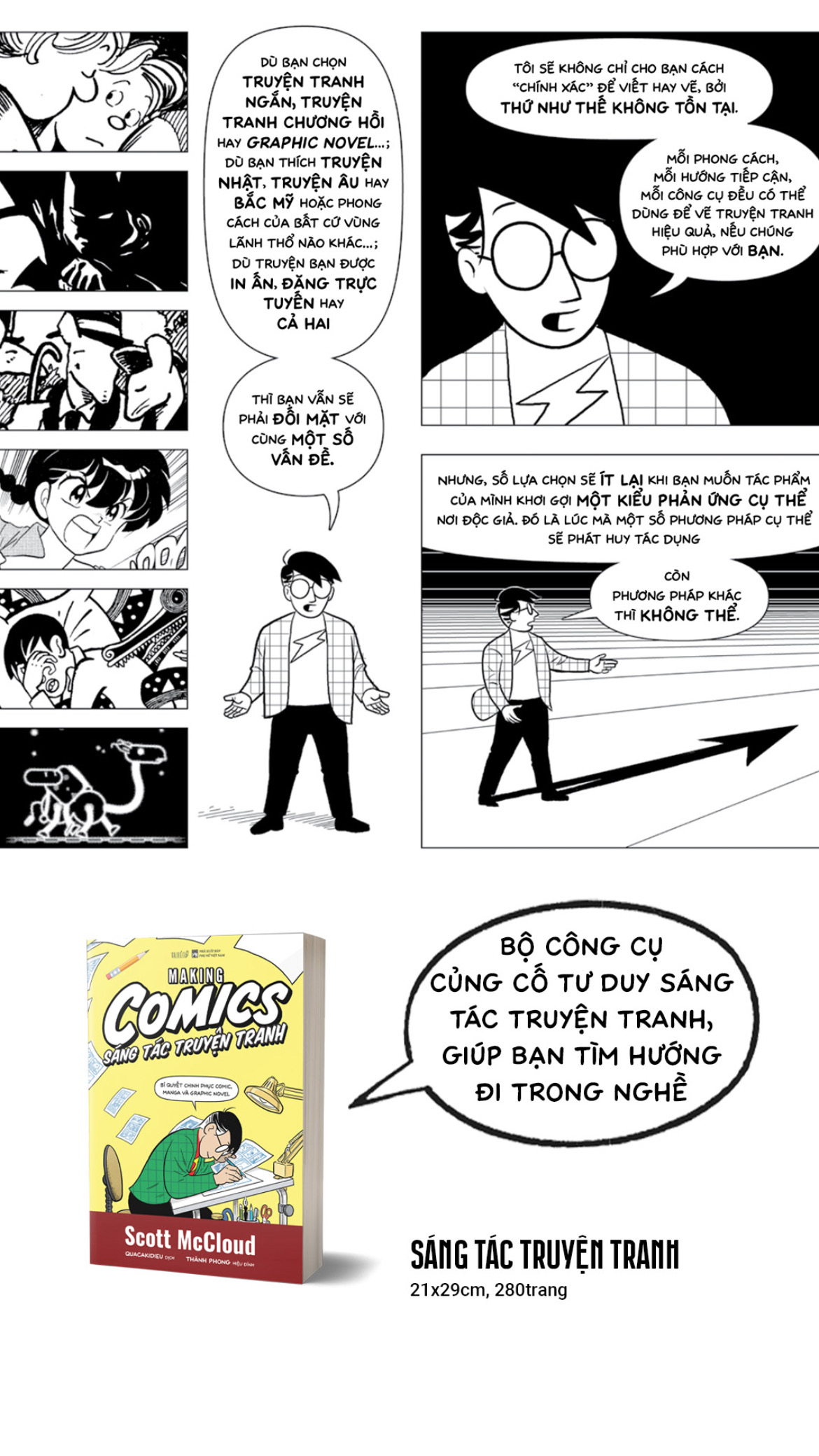 “Sáng tác truyện tranh” là cuốn sách dạy vẽ truyện tranh và hướng dẫn kể chuyện bằng hình ảnh toàn diện nhất từ trước đến nay, do chính Scott McCloud – cây bút hàng đầu trong lĩnh vực lý luận truyện tranh – biên soạn.